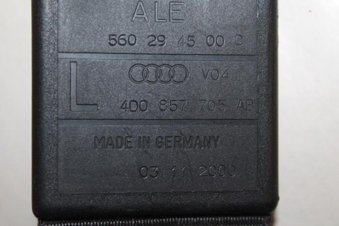 3-punts veiligheidsgordel met oprolautomaat en gordelspanner links voor incl elektrische hoogteverstelling (gordel dient goed schoongemaakt te worden) Kleur: Zwart Kleurcode: V04 Fabrikant: OE Vergelijkingsnummer: 4D0857705AB V04