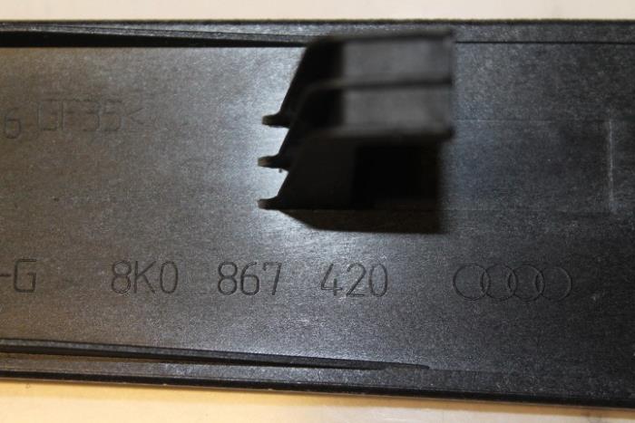 Sierlijst portier rechts achter Kleur: Aluminium ‚trigon‘ Kleurcode: AR8 Fabrikant: OE Vergelijkingsnummer: 8K0867420L AR8