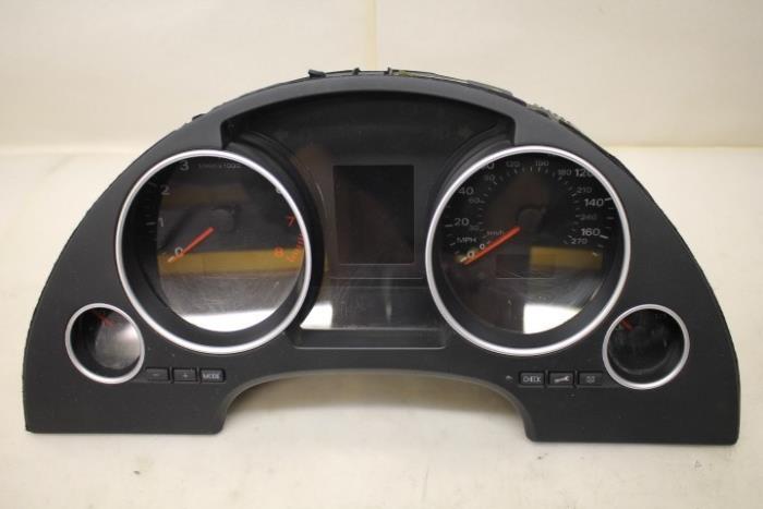 Instrumentenpaneel/km teller ENGELS (rechtsgestuurde wagen) (MPH) Fabrikant: OE Vergelijkingsnummer: 8H0920981E Instrumentenpaneel dient nog gecodeerd/ingeleerd te worden. Tegen een geringe meerprijs is dit bij ons mogelijk.