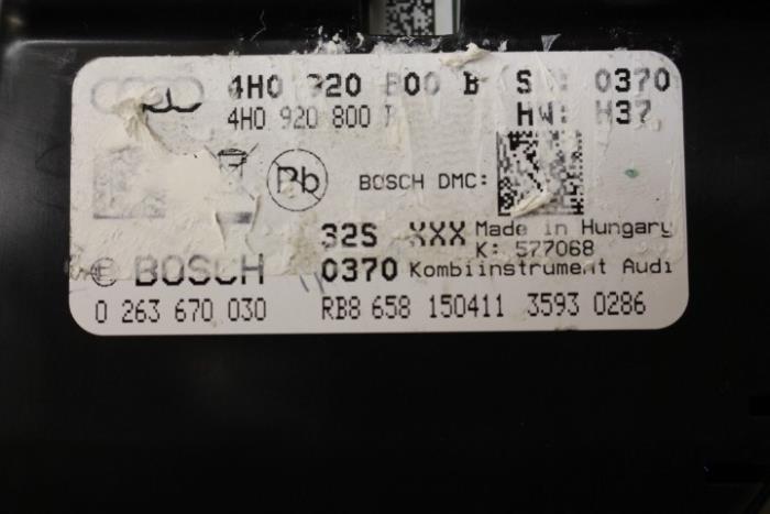 Instrumentenpaneel/km teller benzinemotor Fabrikant: OE Vergelijkingsnummer: 4H0920800B Instrumentenpaneel dient nog gecodeerd/ingeleerd te worden. Tegen een geringe meerprijs is dit bij ons mogelijk.