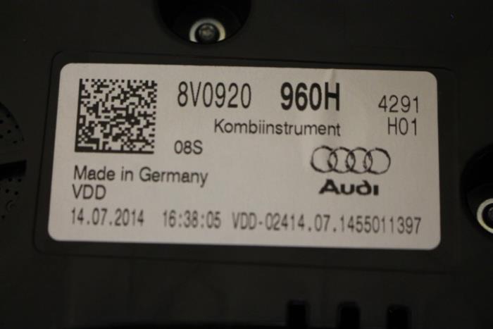 Instrumentenpaneel/km teller benzinemotor MPH Fabrikant: OE Vergelijkingsnummer: 8V0920960H Instrumentenpaneel dient nog gecodeerd/ingeleerd te worden. Tegen een geringe meerprijs is dit bij ons mogelijk.