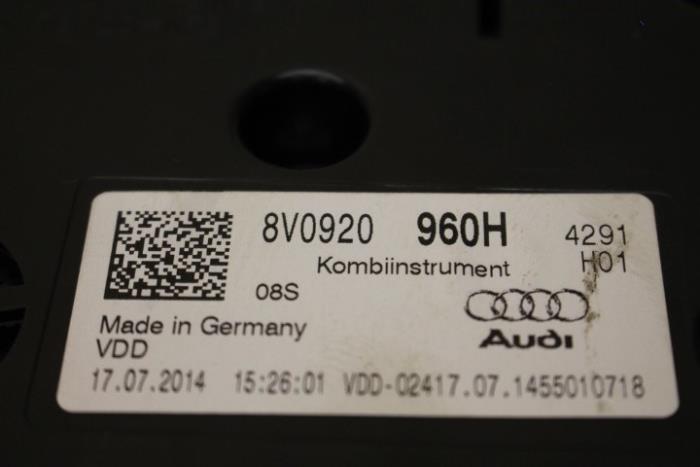 Instrumentenpaneel/km teller benzinemotor MPH Fabrikant: OE Kunsstof glas beschadigd!! (zie foto’s) Vergelijkingsnummer: 8V0920960H Instrumentenpaneel dient nog gecodeerd/ingeleerd te worden. Tegen een geringe meerprijs is dit bij ons mogelijk.