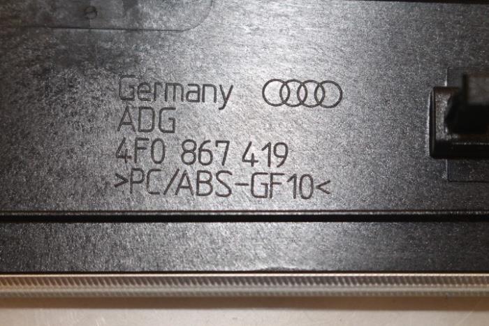 Sierlijst portier links achter Kleur: aluminium Kleurcode: 1MJ Fabrikant: OE Vergelijkingsnummer: 4F0867419G 1MJ