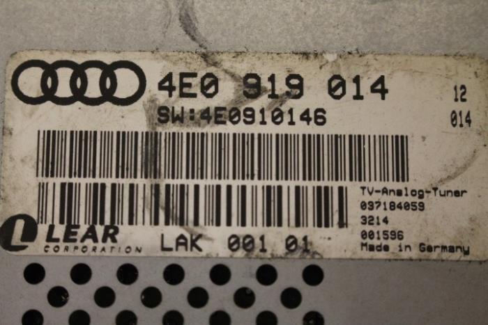 Tv-ontvanger (tuner) met software Fabrikant: OE Vergelijkingsnummer: 4E0910146 TV-tuner dient nog gecodeerd/ingeleerd te worden. Tegen een geringe meerprijs is dit bij ons mogelijk.