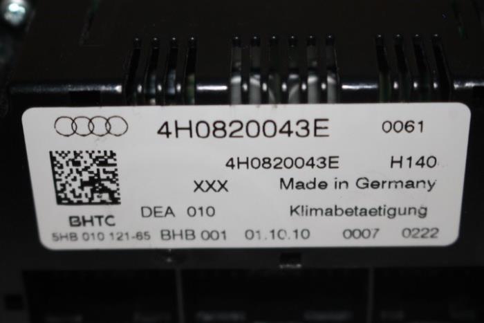 Climatronic paneel / weergave-en bedieningseenheid voor elektron. geregelde airconditioning inclusief stoelverwarming en stoelventilatie Kleur: Soul (zwart)/ Alu Kleurcode: DEA Fabrikant: OE Heeft beschadigingen en bovenkant is gebogen!! (zie foto) Vergelijkingsnummer: 4H0820043E DEA