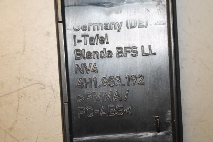 Dashboardafdekking Kleur: Zwart-hoogglanzend Kleurcode: V58 Fabrikant: OE LET OP!!! Heeft een doffe vlek en wat krasjes!!! Vergelijkingsnummer: 4H1853174H V58