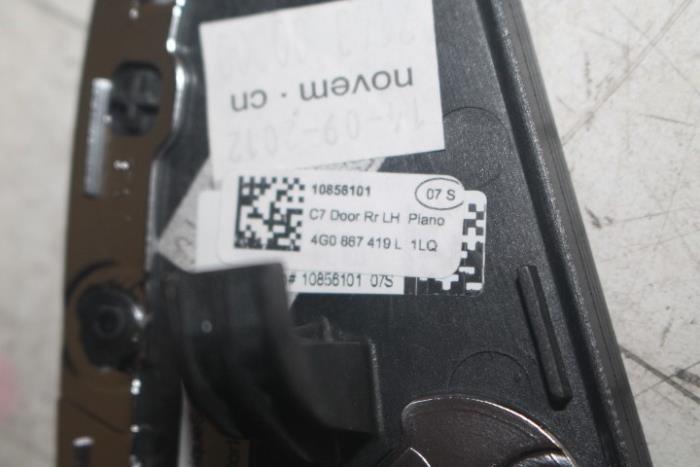 Sierlijst portier links achter Kleur: Pianotoets-zwart Kleurcode: 1LQ Fabrikant: OE LET OP!!! HEEFT WAT KRASJES!!!! DIENT GEPOLIJST TE WORDEN!!! Vergelijkingsnummer: 4G0867419L 1LQ