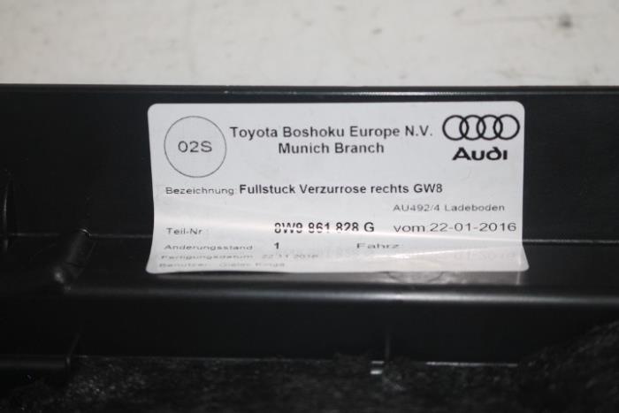 Afdeklijst bagageruimte rechts Kleur: zwart (soul) Kleurcode: GW8 Fabrikant: OE Vergelijkingsnummer: 8W9861828G GW8