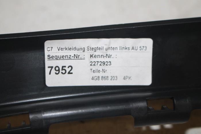 A-stijlbekleding links midden Kleur: Soul (zwart) Kleurcode: 4PK Fabrikant: OE Vergelijkingsnummer: 4G8868203 4PK