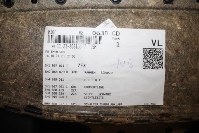 Portierbekleding links voor stof Kleur: Soul (zwart) Kleurcode: ZFX Fabrikant: OE LET OP!!! HEEFT BESCHADIGING BOVENOP!!! (ZIE FOTO) Vergelijkingsnummer: 5H1867009J ZFX