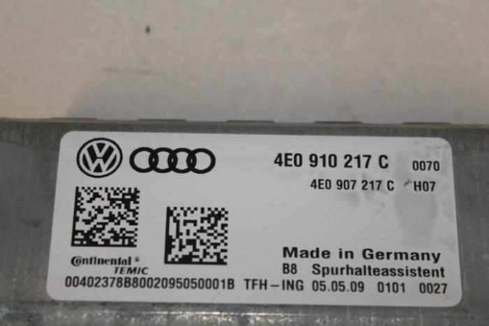 Regelapparaat voor lane assist met camera Fabrikant: OE Vergelijkingsnummer: 4E0910217C Regelapparaat dient nog gecodeerd/ingeleerd te worden. Tegen een geringe meerprijs is dit bij ons mogelijk.