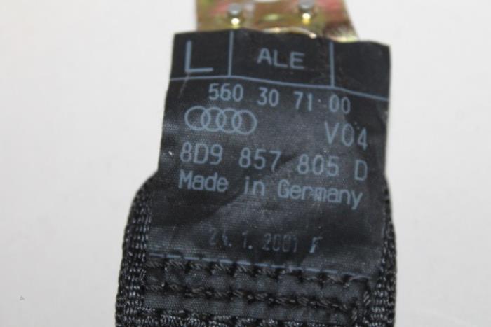 3-punts veiligheidsgordel voor wagens met pyrotechnische gordelspanner links achter (gordel dient goed schoongemaakt te worden) Kleur: Zwart Kleurcode: V04 Fabrikant: OE Vergelijkingsnummer: 8D9857805D V04