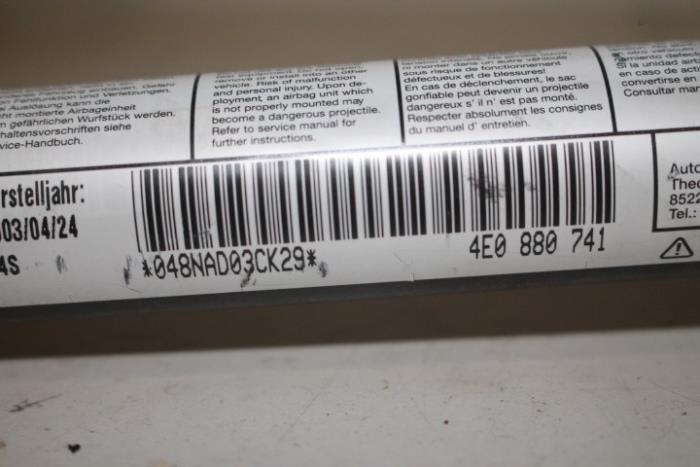 Gordijn-airbag links Fabrikant: OE Vergelijkingsnummer: 4E0880741 KAN NIET VERSTUURD WORDEN!!! ALLEEN MOGELIJK OP TE HALEN IN VEGHEL!!!