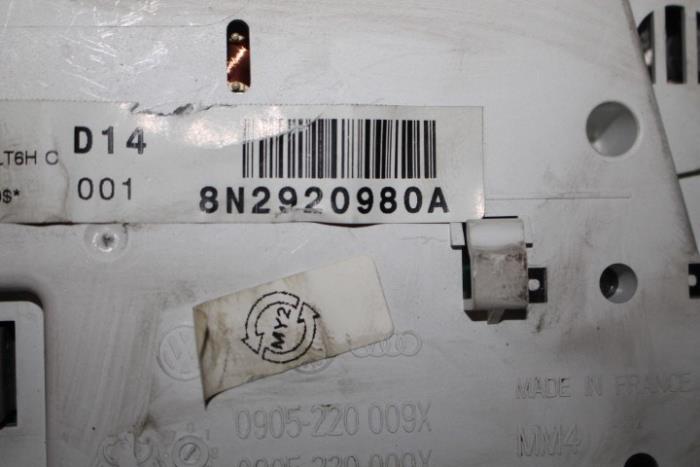 Instrumentenpaneel/km teller benzinemotor ENGELS (rechtsgestuurde wagen) Fabrikant: OE Vergelijkingsnummer: 8N2920980A Instrumentenpaneel dient nog gecodeerd/ingeleerd te worden. Tegen een geringe meerprijs is dit bij ons mogelijk.