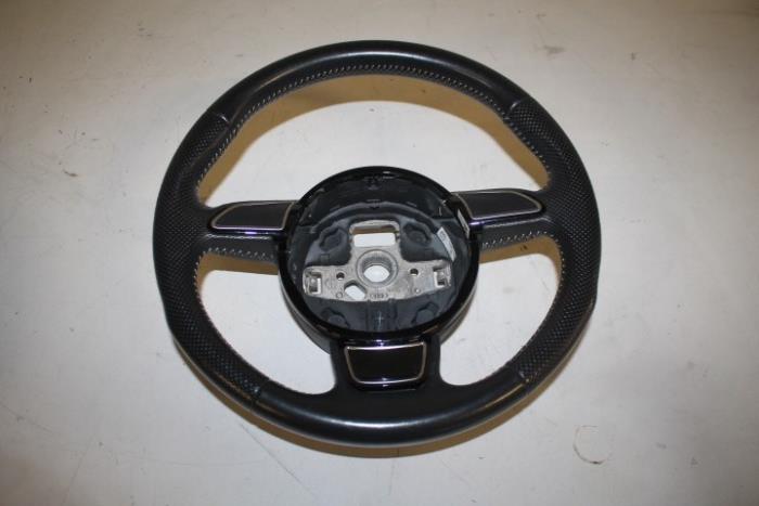 Sportstuurwiel leer-geperforeerd exclusief airbag en claxon Kleur: Soul (zwart)/zilver Kleurcode: RRI Fabrikant: OE LET OP!!! HEEFT WAT GEBRUIKSSPOREN!!! Vergelijkingsnummer: 8K0419091BT RRI