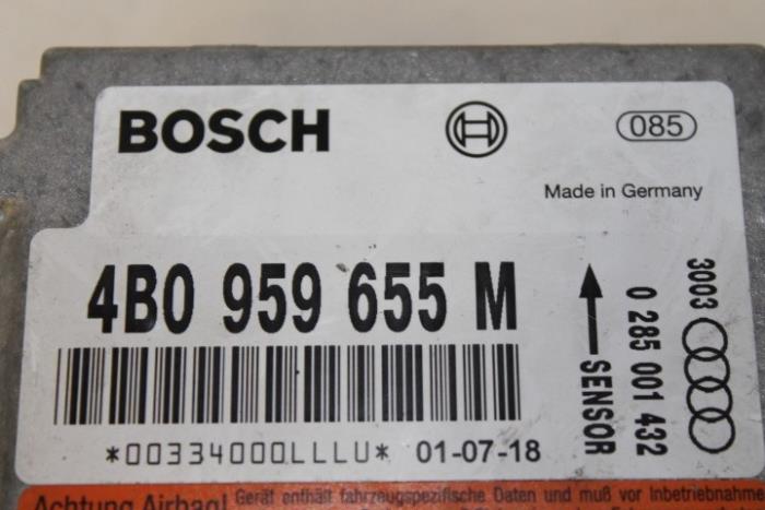 Airbagregelapparaat Fabrikant: OE Vergelijkingsnummer: 4B0959655M Regelapparaat dient nog gecodeerd/ingeleerd te worden. Tegen een geringe meerprijs is dit bij ons mogelijk.
