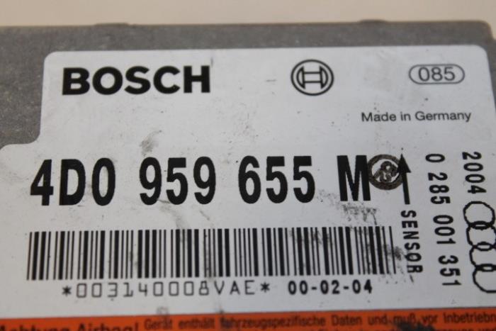 Airbagregelapparaat Fabrikant: OE Vergelijkingsnummer: 4D0959655M Regelapparaat dient nog gecodeerd/ingeleerd te worden. Tegen een geringe meerprijs is dit bij ons mogelijk.