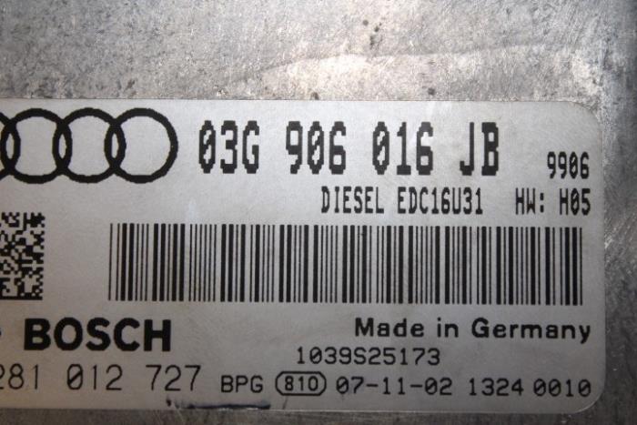 Regelapparaat dieselmotor 2.0 TDI schakelbak Motorcode: BRF Fabrikant: OE Vergelijkingsnummer: 03G906016JB
