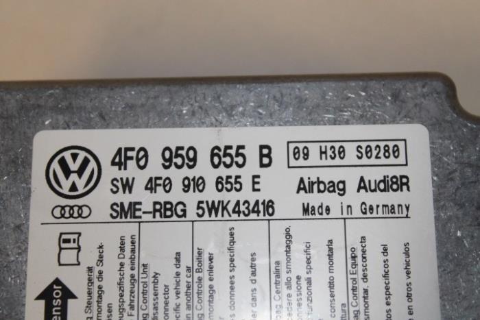 Airbagregelapparaat Sw nummer: 4F0910655E Fabrikant: OE Vergelijkingsnummer: 4F0910655E Regelapparaat dient nog gecodeerd/ingeleerd te worden. Tegen een geringe meerprijs is dit bij ons mogelijk.