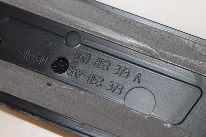 Dorpellijst/instaplijst links voor, Allroad quattro tekst erop Kleur: Satijnzwart Kleurcode: 01C Fabrikant: OE Lijstje heeft wat lichte beschadigingen, bevestigingspunten zijn afgebroken, Nog wel te monteren dmv plakstrips Vergelijkingsnummer: 8K9853373 01C