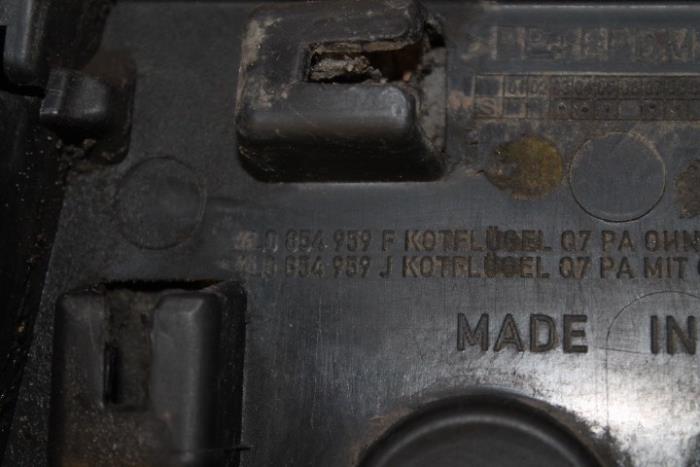 Afdekking voor spatscherm met sierlijst links voor Kleur: Orca zwart Kleurcode: LC9X Fabrikant: OE Afdekking heeft wat steenslag!! Vergelijkingsnummer: 4L0854959J LC9X