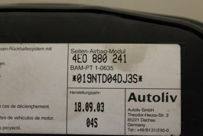 Zij-airbag-eenheid stoel links voor Fabrikant: OE Vergelijkingsnummer: 4E0880241