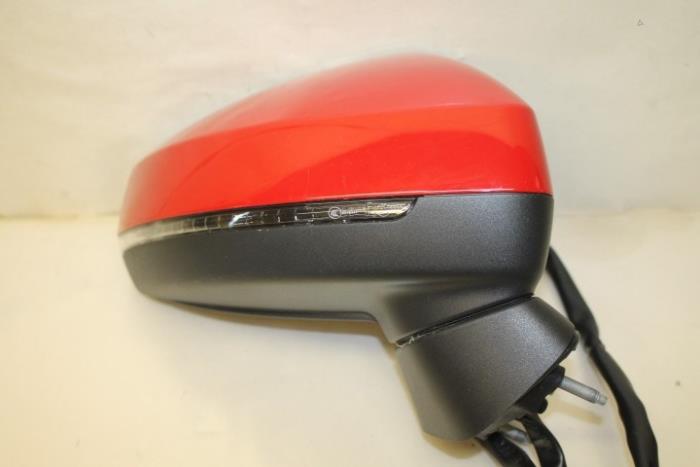 Buitenspiegelsteun rechts met elektrische versteleenheid en spiegelkap rood Kleur: Satijnzwart Kleurcode: 9B9 Fabrikant: OE EXACTE VERGELIJKINGSNUMMER ONBEKEND!!! Vergelijkingsnummer: 8V1857410 9B9