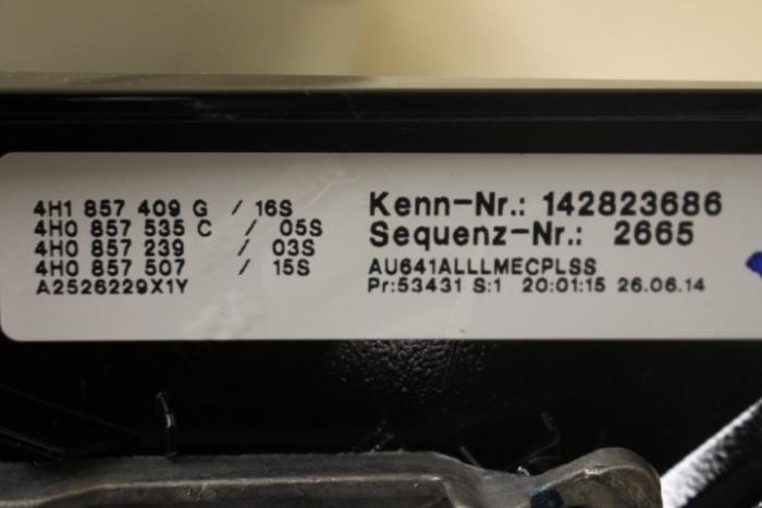 Buitenspiegelsteun links inklapbaar met elektrische versteleenheid en spiegelkap en knipperlicht Kleur spiegelkap: Cuveezilver Kleurcode: X1Y Fabrikant: OE Vergelijkingsnummer: 4H1857409G