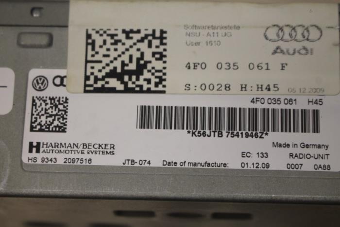 Radio-eenheid voor wagens met tv-ontvangst en digitale radio-ontvangst Fabrikant: OE Vergelijkingsnummer: 4F0035061F