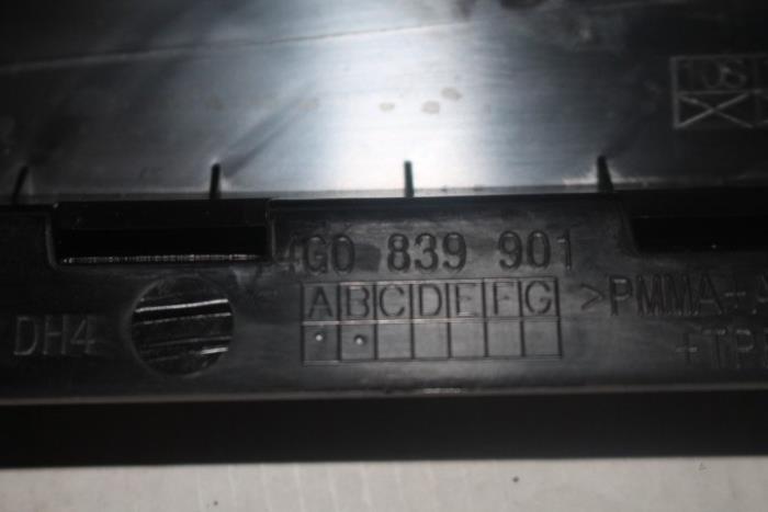 Paneel voor b-stijl links achter Kleur: Zwart-glanzend Kleurcode: 5FQ Fabrikant: OE LET OP!!! HEEFT WAT KRASJES!!!! Vergelijkingsnummer: 4G0839901B 5FQ