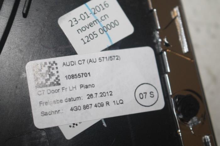 Sierlijst portier links voor Kleur: Pianotoets-zwart Kleurcode: 1LQ Fabrikant: OE LET OP!!! HEEFT WAT KRASJES!!!! DIENT GEPOLIJST TE WORDEN!!! Vergelijkingsnummer: 4G0867409R 1LQ