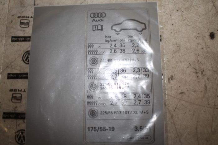 Sticker voor bandenspanning Fabrikant: OE Vergelijkingsnummer: 8K9010502AK