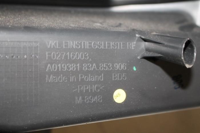 Dorpellijst/instaplijst rechts Kleur: Soul (zwart) Kleurcode: 4PK Fabrikant: OE LET OP!!! HEEFT WAT BESCHADIGINGEN!!! Vergelijkingsnummer: 83A853906 4PK