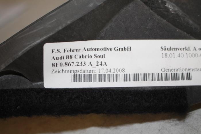 A-stijlbekleding links boven Kleur: Soul (zwart) Kleurcode: 24A Fabrikant: OE Vergelijkingsnummer: 8F0867233A 24A