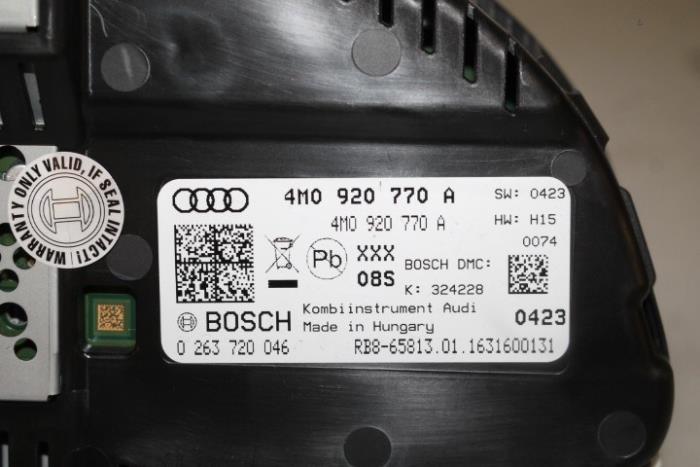 Instrumentenpaneel/km teller benzinemotor Fabrikant: OE Vergelijkingsnummer: 4M0920770A Instrumentenpaneel dient nog gecodeerd/ingeleerd te worden. Tegen een geringe meerprijs is dit bij ons mogelijk.