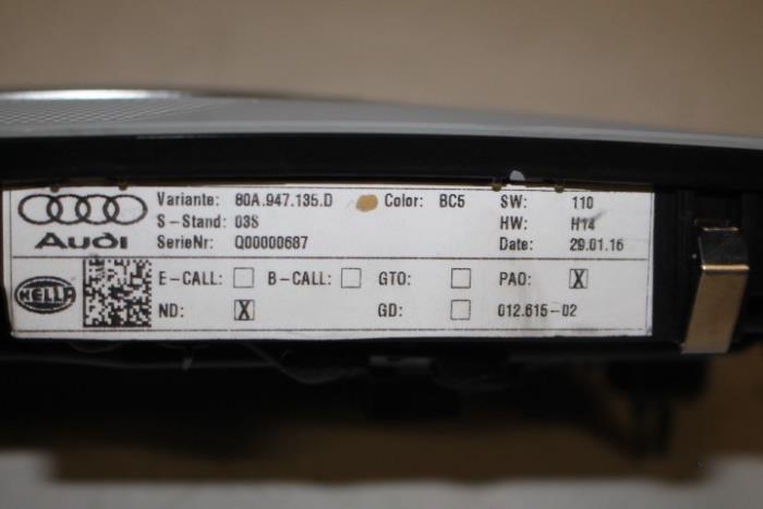 Binnenverlichting en leeslampje voorzijde Kleur: Titaniumgrijs Kleurcode: BC5 Fabrikant: OE Vergelijkingsnummer: 80A947135D BC5